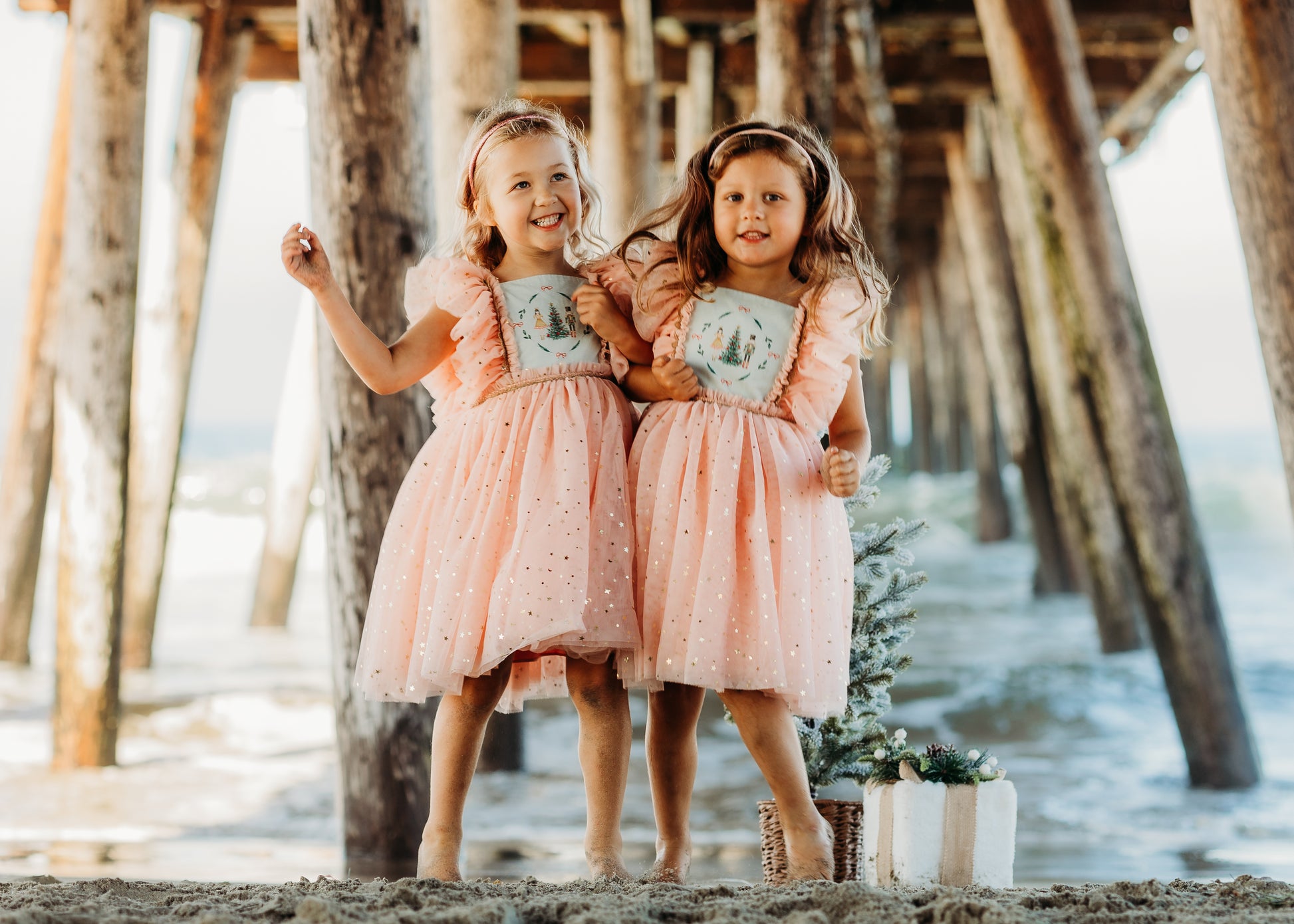 This breathtaking holiday showpiece is inspired by the timeless elegance of The Nutcracker. Designed for little ones who dream in pirouettes and pas de deux, this enchanting dress truly takes the spotlight. The soft ballet pink tulle is weightless and ethereal, scattered with delicate gold stars that shimmer with every twirl, reminiscent of Clara's dreamy dance through the Land of Sweets. Flutter sleeves lend a classic, refined silhouette worthy of center stage, while the fully smocked back offers all-day comfort. The Nutcracker themed bodice is rich in storybook charm that is just perfect for curtain calls, holiday soirees, and everything in between. From ice skating to magical mornings under the tree, this limited edition treasure will be the one she reaches for again and again, and the one you'll never forget. Every dress comes with matching bloomers in every size, because no detail should ever fall out of step.